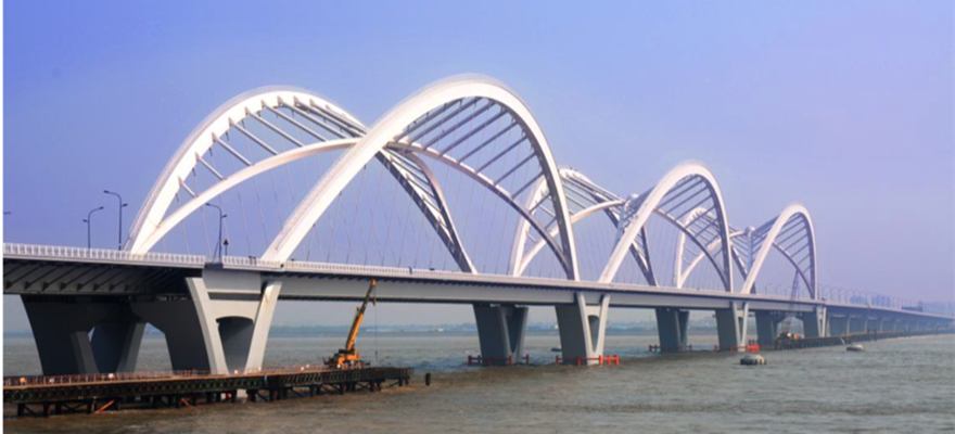該項目是杭州(zhōu)市城市總(zǒng)體規劃(2001-2020)中“兩繞三縱五橫”城市快速路網係統中的(de)重要組成部分,是浙(zhè)江省重(chóng)點(diǎn)工程建設項目。大橋全長1855米,概算總投(tóu)資10.82億元,主橋上部結構為3×210m跨徑的連續梁(liáng)-鋼拱組合體係結(jié)構橋梁,鋼結構總重約1.3萬噸,施工采用首創“整體頂推施工”工法,創新了建設理念(niàn)與施工技術,多(duō)項科(kē)研成果達國際領先水平(píng),體現了全壽命經濟性理念,為推動我國組合結構橋梁的發展做出貢獻。項目榮獲第十一屆中國土木工程詹天佑獎(jiǎng)、2012-2013年度中國建設工程魯班(bān)獎、全國市政金獎。