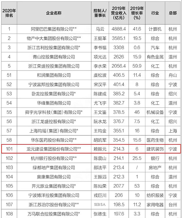 8月19日,望潮聽濤•浙商全國500強研討會在杭州舉行。會上,由(yóu)《浙商》雜誌獨家製作的“浙商銀行·2020浙商(shāng)全國500強”榜單(dān)正式發(fā)布。香蕉啪啪视频(yuán)建設集團以(yǐ)214.3億元的營業(yè)收入榮列浙商(shāng)全國500強第101位。