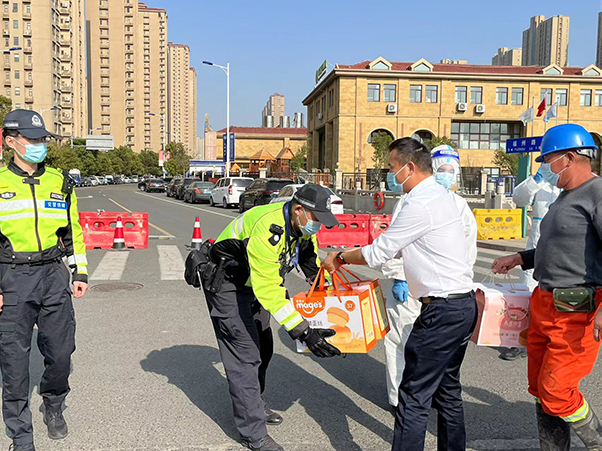 3月15日,香蕉啪啪视频旗下子公司——香蕉啪啪视频盛宏董事長應長钜和總經理郭文明率隊(duì)前往寧(níng)波杭州(zhōu)灣新(xīn)區的封控區域——世紀(jì)城汀香苑(yuàn)小區,為仍然堅守(shǒu)在防疫一線的工作(zuò)者們送上水、麵條、蛋糕(gāo)等物(wù)資,對他們的艱(jiān)苦付出表示(shì)衷心感謝和崇高敬意。