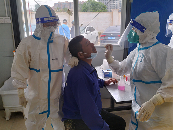 4月28日下午,項(xiàng)目部(bù)召集管理人員,召回現場工人,迅速組織(zhī)開展全員核酸檢測工作。信息核對、樣本采集、樣品分裝等各個環節忙而(ér)不亂,急而有序,項目管理人員全部出動,2個半(bàn)小時配合醫護人員完成項目部全員1220人核酸采樣工作。