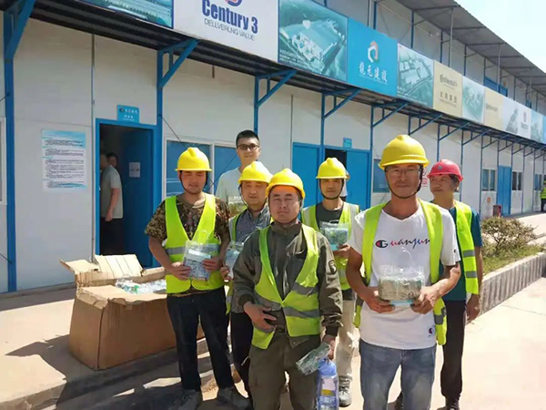 7月26日起,湖南分公司工程經理黃怡帶隊,先後走訪了大陸新(xīn)廠房(fáng)和株洲聖樺錦(jǐn)悅府項目(mù)工地,向堅守在高溫一線的(de)建(jiàn)設者們送上親切慰問,同時也帶去了分公司為他(tā)們準備(bèi)的夏季清涼用(yòng)品,並(bìng)對他們的辛勤付出表示感謝。